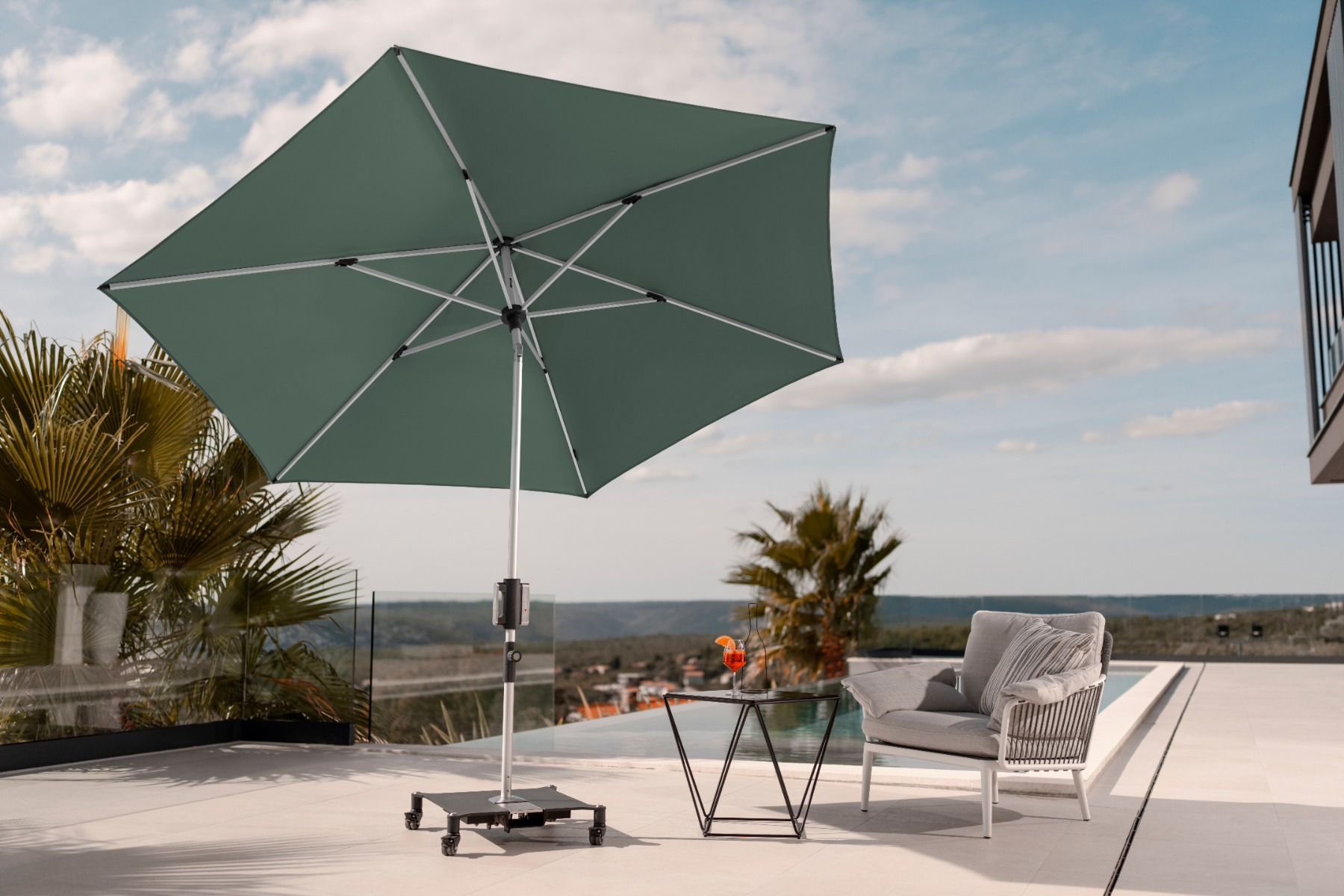 Le parasol à mât central Apoll 240 x 240 a reçu la distinction « Special Mention » du German Design Award pour ses performances remarquables en matière de design.