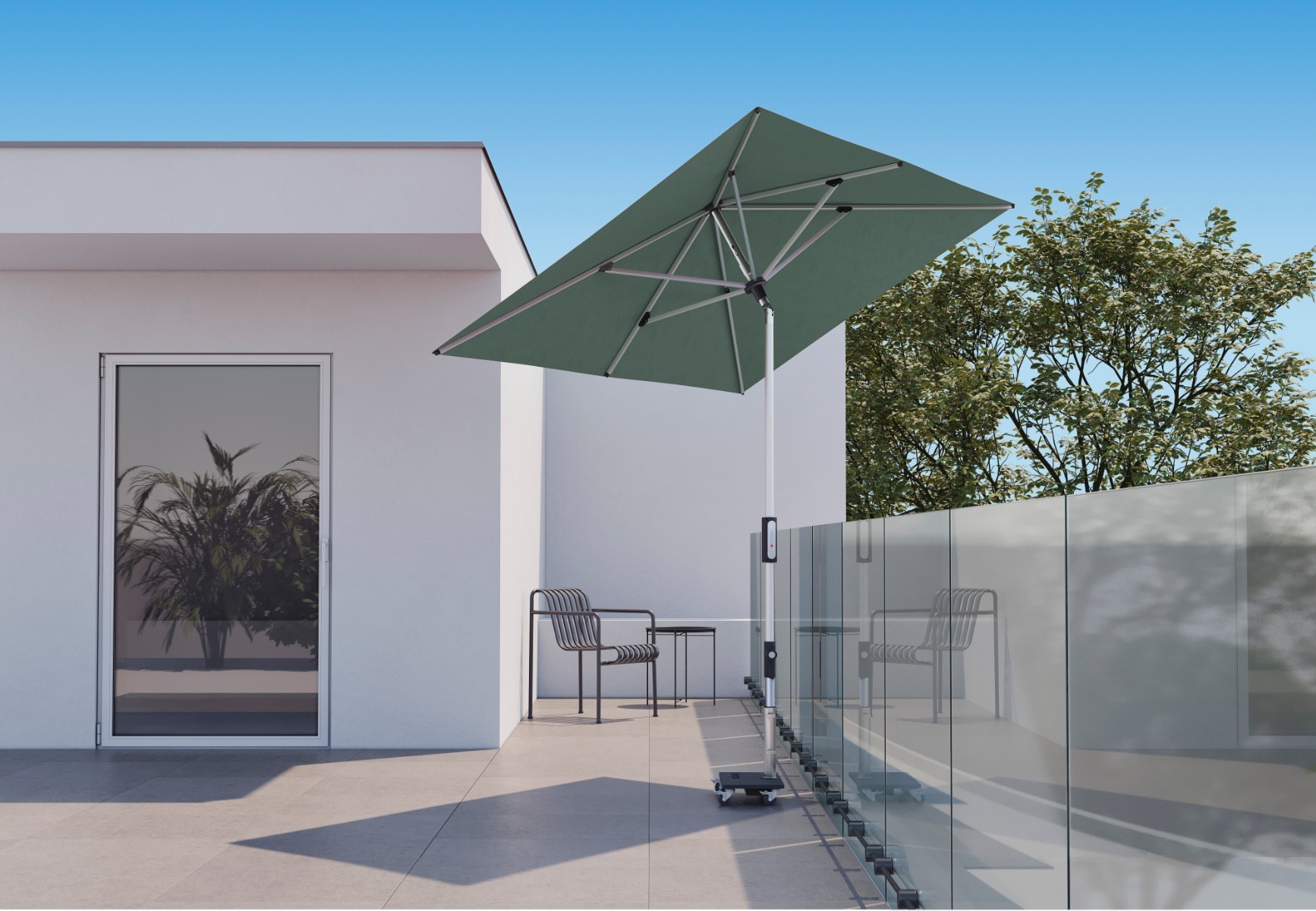 Les parasols Knirps Apoll disposent d'un réglage en hauteur pratique jusqu'à 30 cm et constituent ainsi une solution idéale pour les balcons et les terrasses. Grâce à leur fonction d'inclinaison automatique, ces parasols offrent toujours une ombre optimale, même lorsque le soleil est bas, ainsi qu'une protection UV élevée de 80 (selon la norme 801).